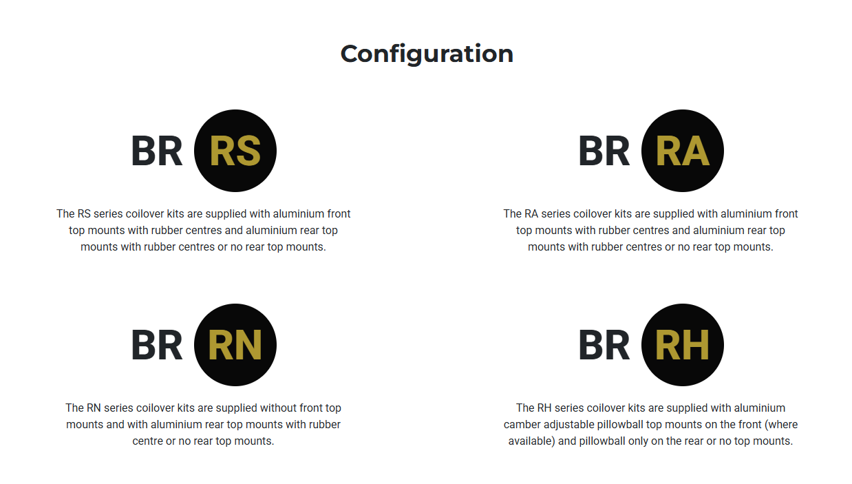 The BR series coilovers use a large 46mm diameter piston in a 53mm diameter damper body to maximise oil capacity. As the damper unit operates the oil contained within heats up. The viscosity of oil changes as its temperature varies which can lead to changes in the damping characteristics of the unit.